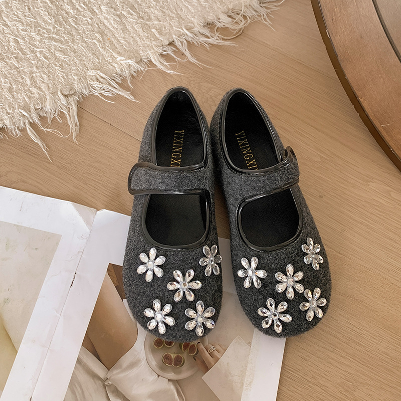 Embrace timeless style with our Retro Crystal Flower Stitching Mary Jane Flats. These charming shoes blend classic Mary Jane design with a touch of vintage glamour. Delicate crystal flower embellishments adorn the toe, catching the light and adding a touch of sparkle to every step.