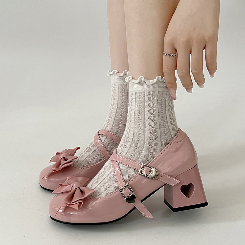 Sweet Bowknot Heels With Hollow Heart
