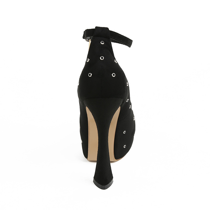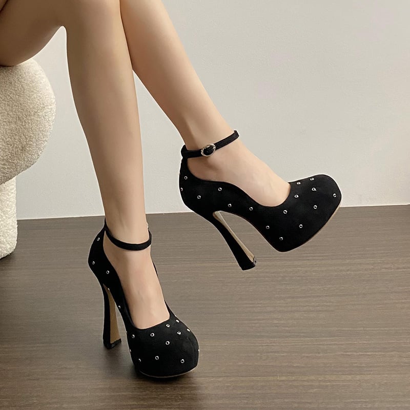 Whether you're hitting the club, attending a glamorous event, or simply want to add a dose of fierce to your wardrobe, these Rivet Studded Platform High Heels will ensure you turn heads wherever you go. Step into the spotlight and own your style.