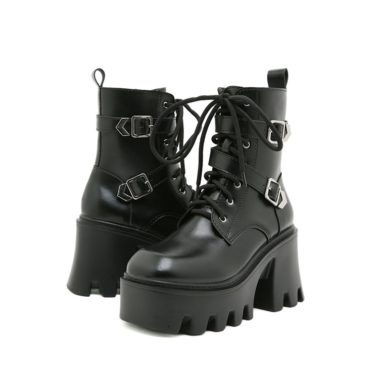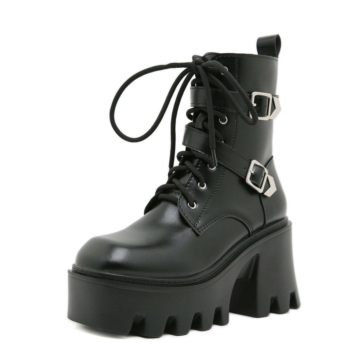 Step into defiant style with these essential Black Lace-Up Heeled Boots. Merging gothic punk attitude with a motorcycle edge, they boast a striking front lace-up system and rugged buckle belt details. The sturdy heel adds confident height, while a convenient side zip ensures easy on-and-off. Perfect for completing your fierce alternative look, these boots deliver comfort and uncompromising style day or night.