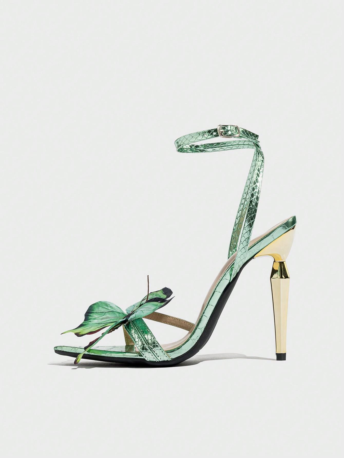 Unleash your inner goddess with our stunning Green Butterfly Stiletto Sandals. These captivating heels feature an intricate butterfly design in a vibrant emerald hue, gracefully adorning your feet. The sleek stiletto heel offers a confident lift, while the delicate straps ensure a secure and comfortable fit. Perfect for making a breathtaking entrance at any special occasion, these sandals are designed to turn heads and elevate your style with whimsical elegance.