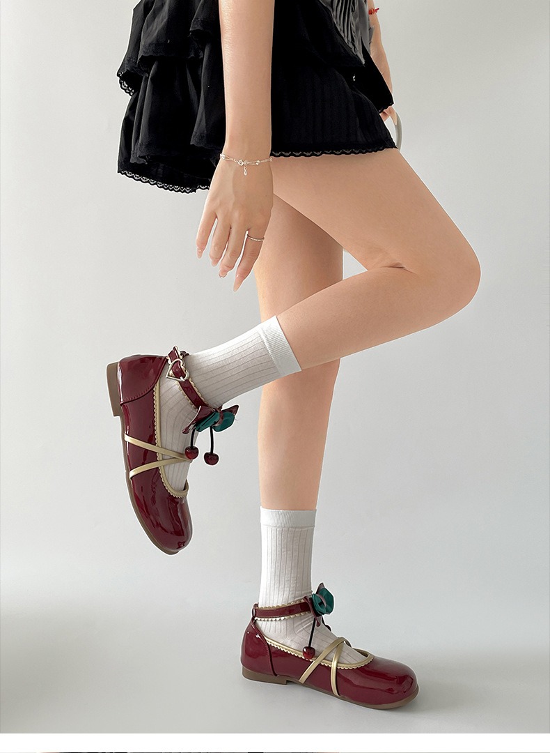 Step out in style with our Cherry Red Ballet Style Mary Jane Shoes. These vibrant patent leather beauties bring a playful yet sophisticated touch to any outfit. The iconic Mary Jane strap offers a secure and comfortable fit, while the removable cherry bowknot lets you customize your look – from classic elegance to playful charm. Perfect for adding a pop of color and a dash of retro chic to your wardrobe.