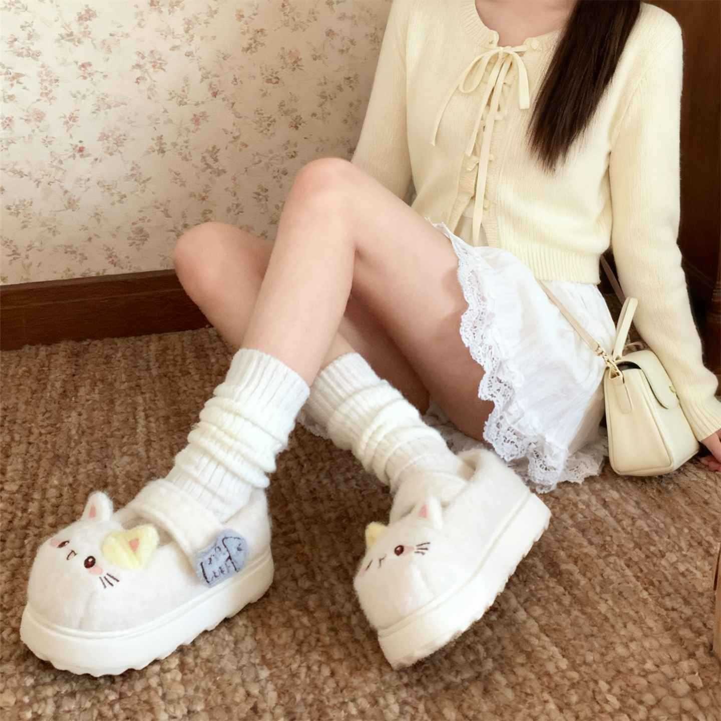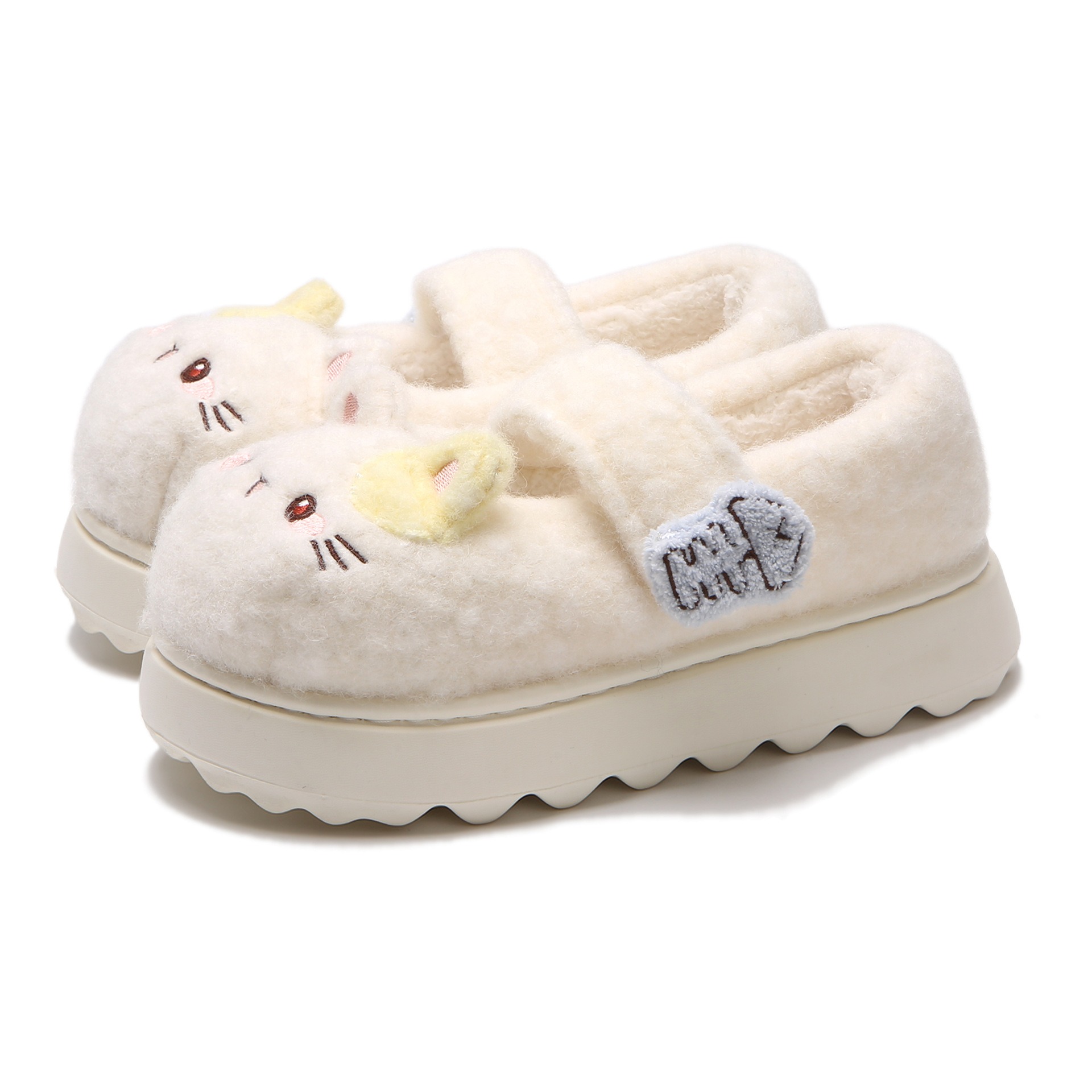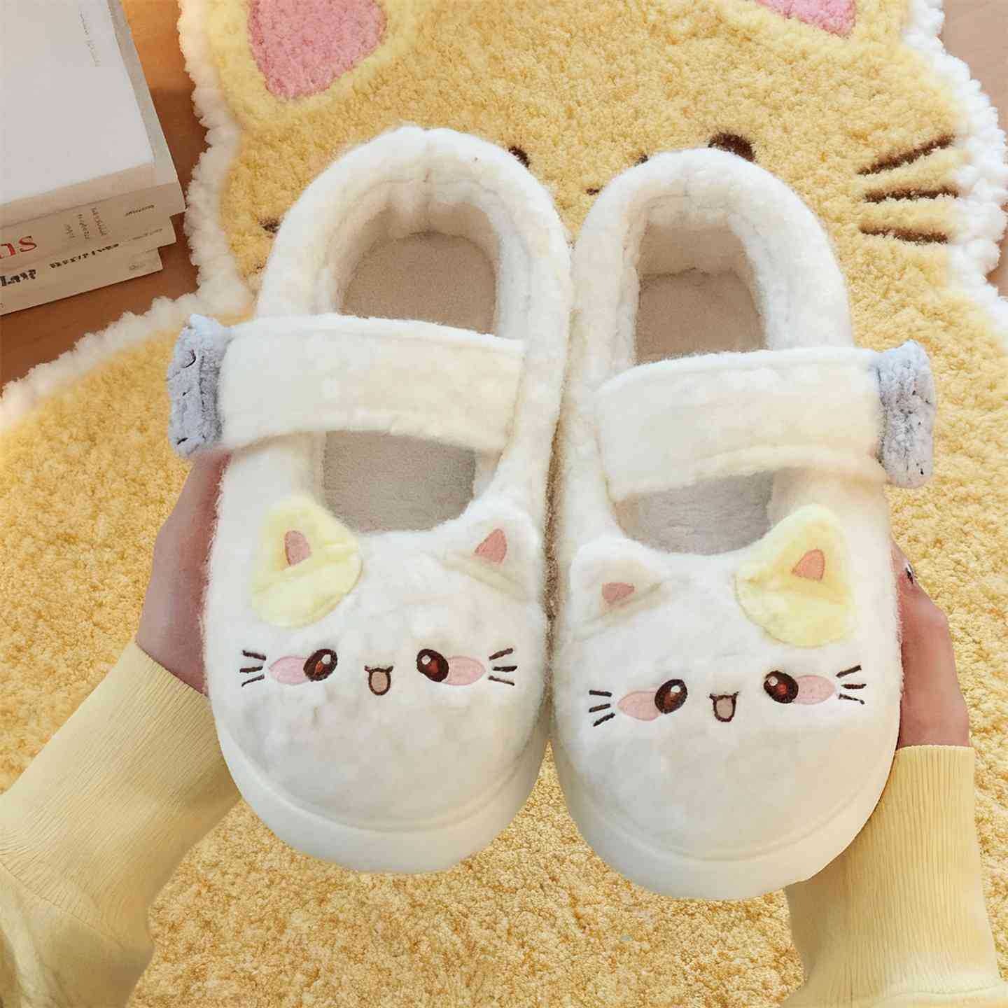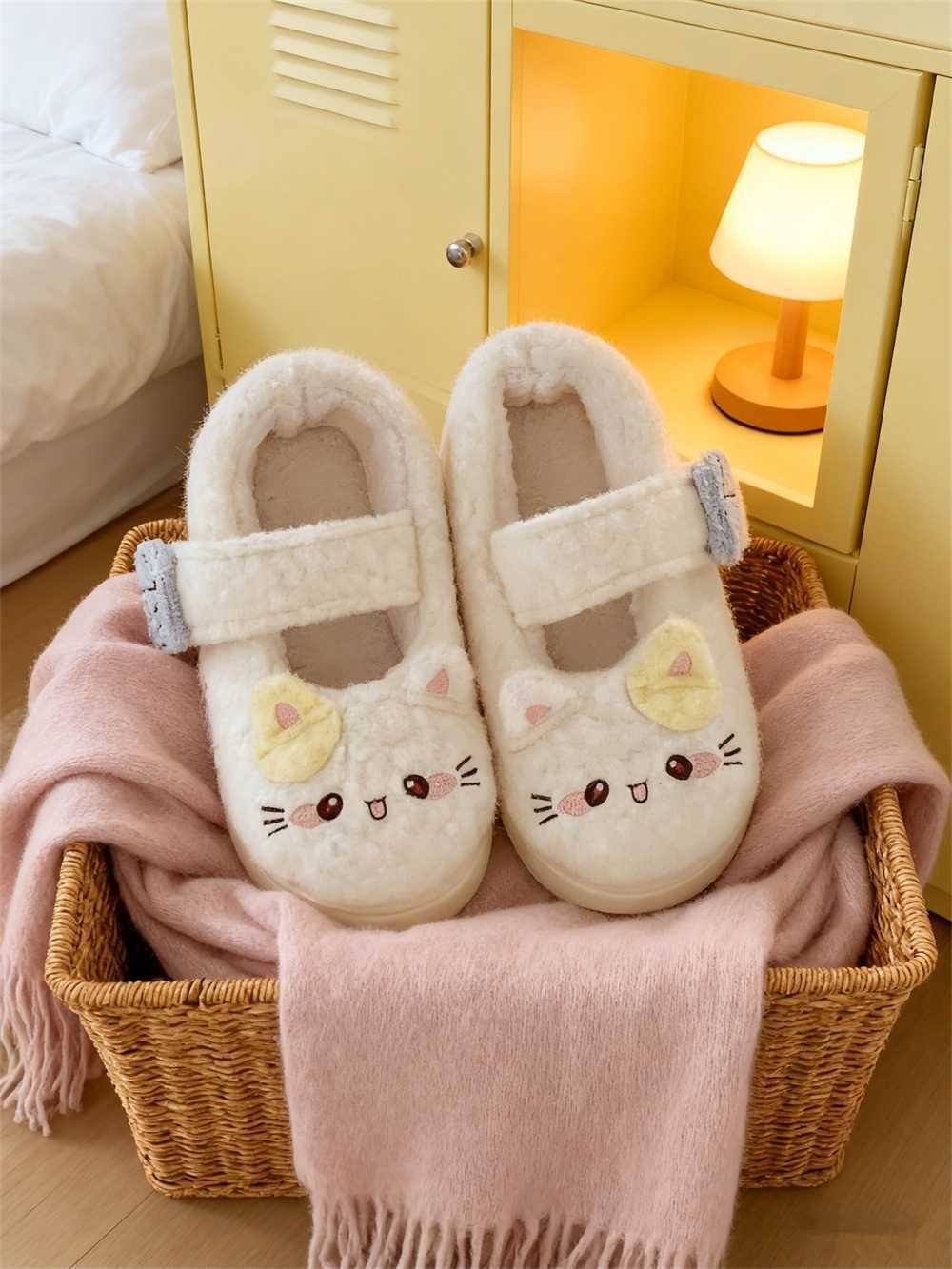 Purr-fect Comfort: Cute Kitty Velcro Mary Jane Fleece Shoes